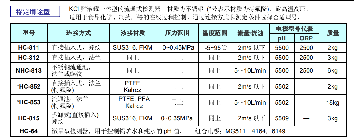 (N)HC-8 型系列流通式 pH·ORP 計檢測器